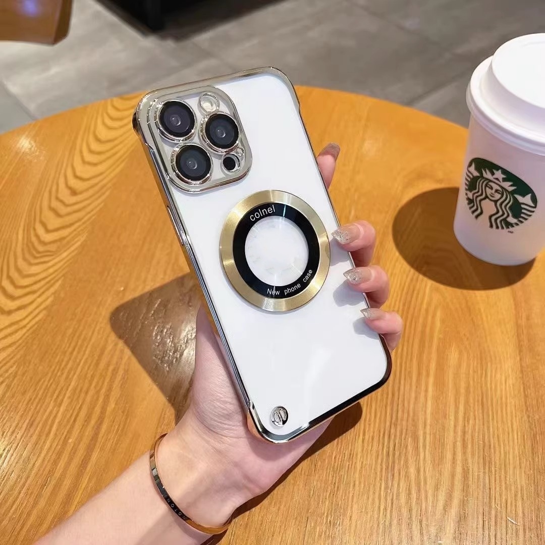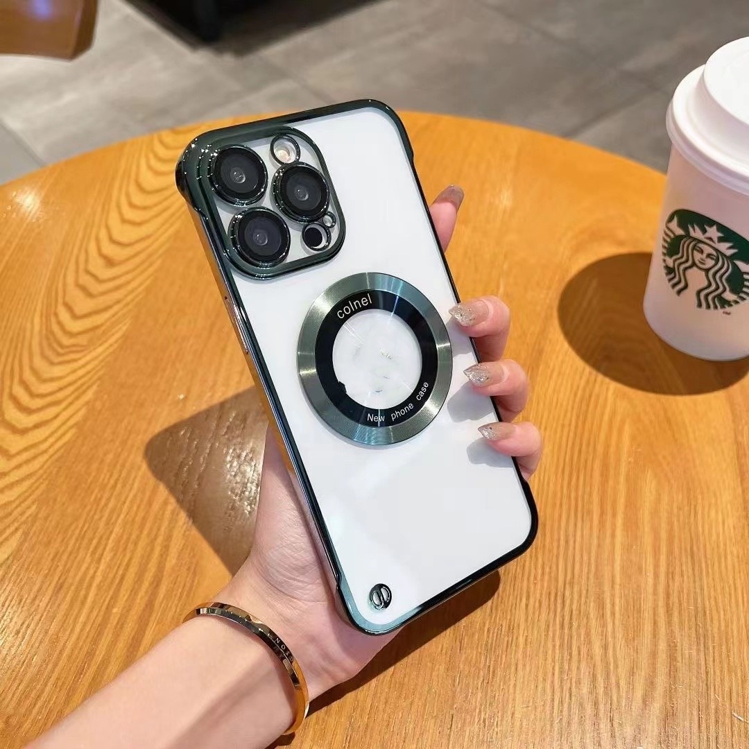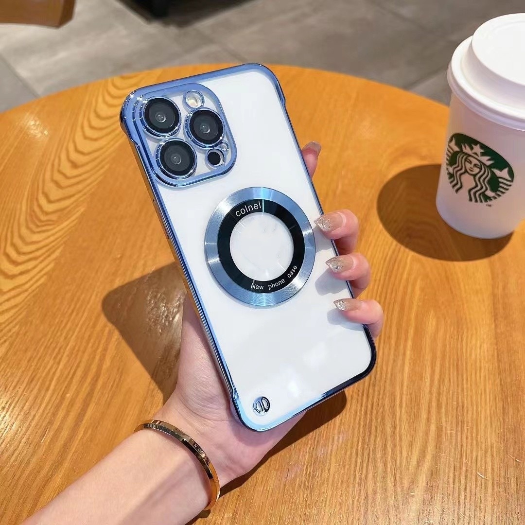 Available in a variety of stylish colors such as black, gold, far peak blue, pink, army green, dark purple, silver, and transparent, this case not only protects your phone but also enhances its visual appeal. With its unique combination of functionality and style, the 14Promax Frameless Magnetic Case is an ideal choice for anyone seeking both protection and aesthetic enhancement for their Apple devices.