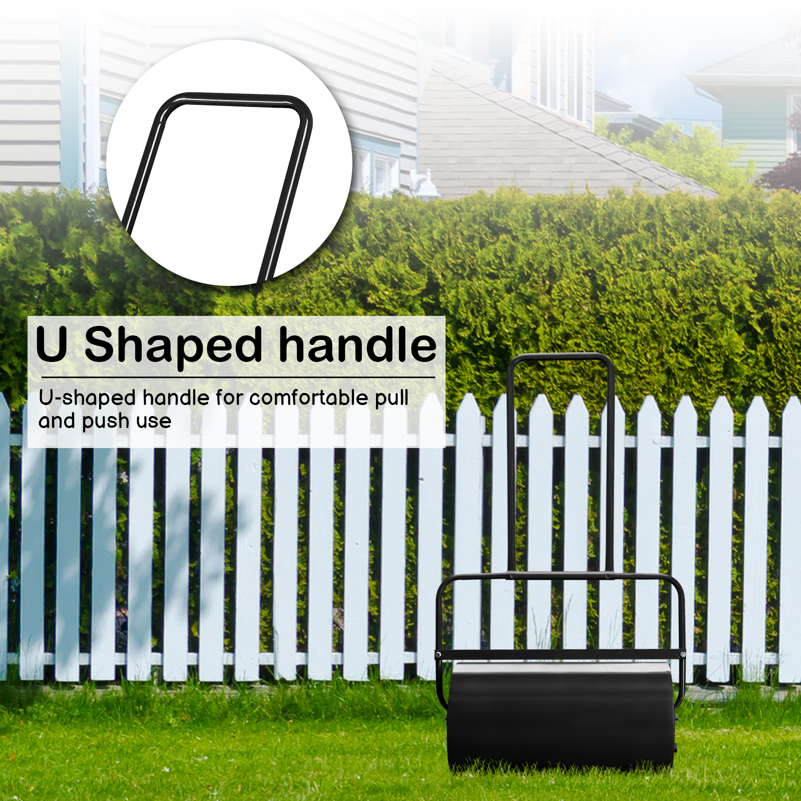 In terms of advantages, the 19-Inch Black Iron Cylindrical Lawn Roller stands out due to its thoughtful design and practical features. One of its primary selling points is its ease of use, facilitated by a U-handle that offers comfortable pulling and pushing. The roller’s steel drum is equipped with rolled rounded edges, delivering optimal rolling results without damaging the lawn during turns—a significant consideration for maintaining the health of grass. Additionally, the roller can hold up to 16 gallons of water, allowing for increased weight necessary to flatten uneven surfaces effectively. The green sprayed surface provides a smooth finish that is not only attractive but also resistant to rust, ensuring longevity and aesthetic appeal. Compared to alternatives on the market, this lawn roller combines quality craftsmanship with user-friendly features, making it a superior choice for those serious about lawn care.