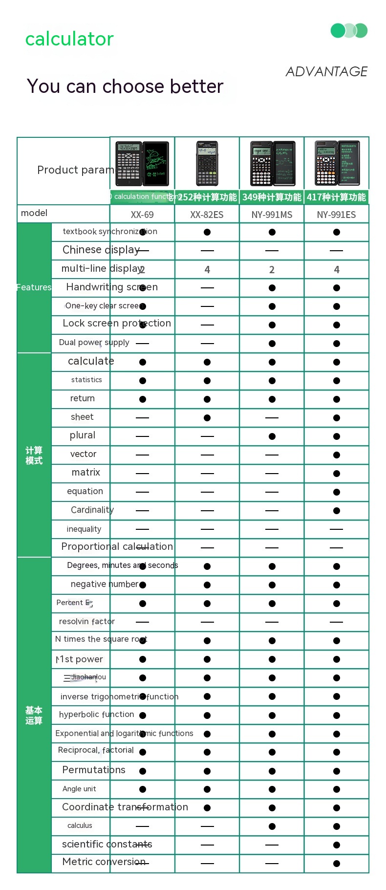 The calculator and notepad are integrated, allowing you to write while calculating, thereby enhancing learning and work efficiency. Its straightforward operation makes it ideal for beginner students and professionals in the sciences.