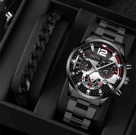 The 2pcs Men’s Trendy Steel Strip Business Three Eye Quartz Watch Bracelet Set is a sophisticated accessory suite designed to enhance the style and functionality of any outfit. This product is particularly versatile and can be used in a multitude of settings, making it ideal for various occasions. Whether you’re attending a formal business meeting, going out for a casual dinner, or celebrating a special event, this watch and bracelet set fits seamlessly into any environment. The luxurious design appeals to professionals and fashion-forward individuals alike, making it suitable for industries ranging from corporate to creative fields. With its sleek appearance, this set can also serve as an elegant gift for occasions like Valentine’s Day, anniversaries, or birthdays, ensuring that it meets the diverse needs of today’s modern man.