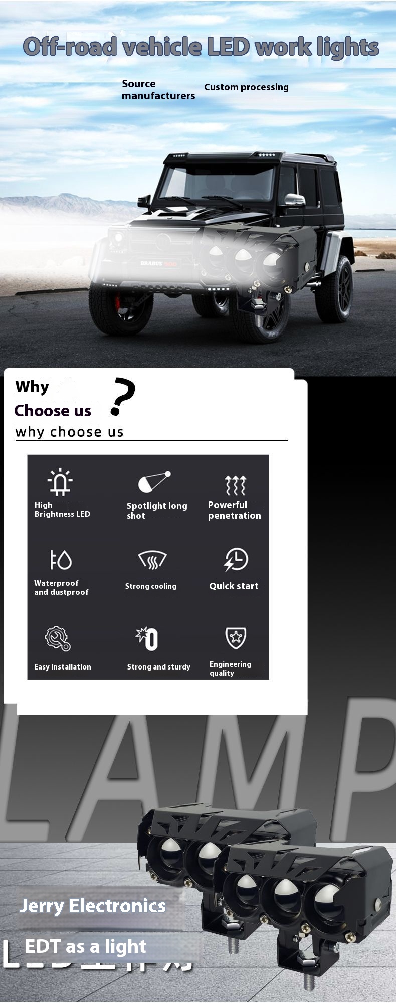 One of the standout features of the 30W Raptor Electromobile Lights is their exceptional brightness coupled with energy efficiency. This product is crafted with a die-cast aluminum shell and a PC face mask, ensuring it not only delivers powerful illumination but also withstands the rigors of outdoor use. The IP67 protection level guarantees resistance to dust and water, enabling these lights to function optimally in challenging weather conditions and rugged environments.