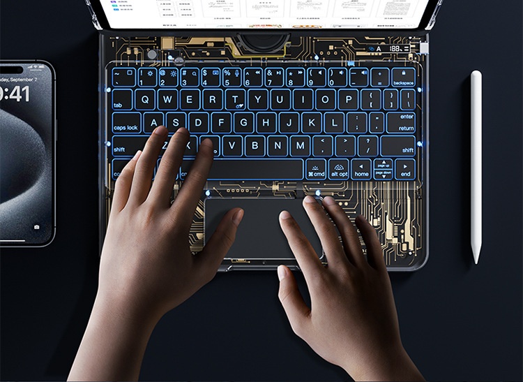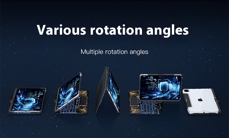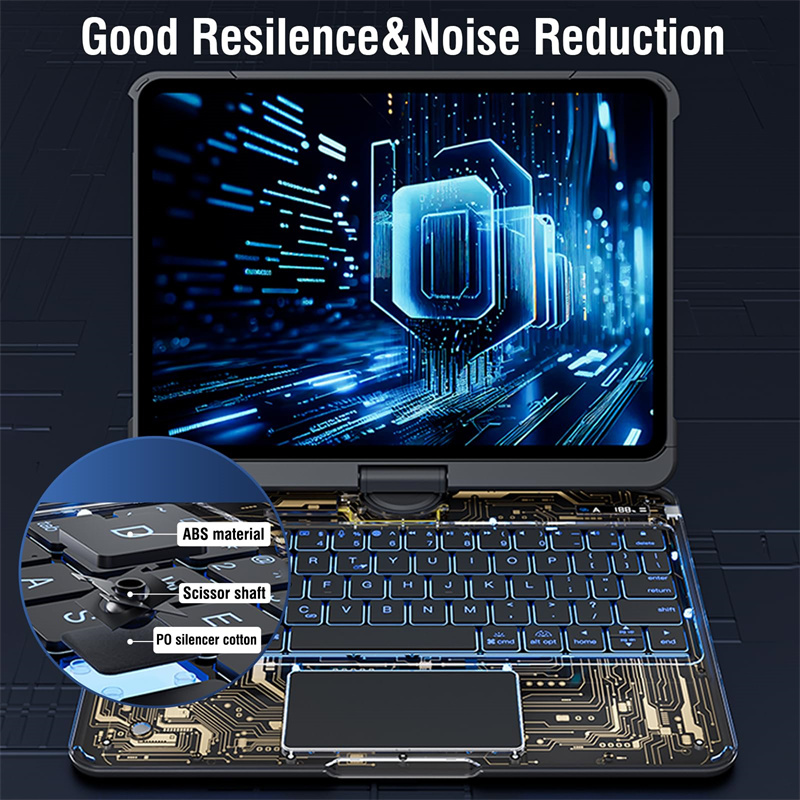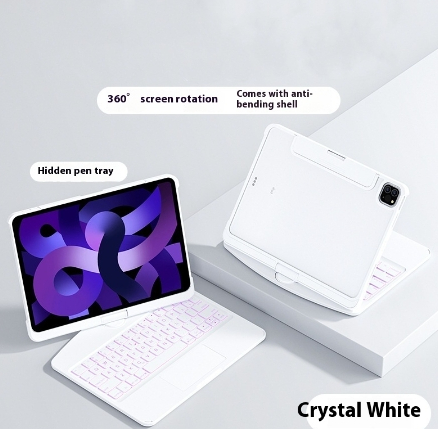 The 360-Degree Swivel Clear Keyboard Case for iPad Smart Trackpad is an innovative accessory designed to enhance the functionality of your iPad while providing superior protection. This versatile product is suitable for a variety of applications across multiple sectors, including education, business, and personal use. In educational settings, students can benefit from its ergonomic design, allowing for easy typing and note-taking during lectures. Business professionals will find it invaluable for presentations, as the 360-degree rotation enables seamless transitions between modes—whether you need to showcase a document or engage in a video call. Personal users can enjoy its sleek, stylish design in a variety of environments, from coffee shops to home offices. The case accommodates different iPad models and integrates seamlessly with Bluetooth technology, making it a perfect companion for digital artists and writers alike.