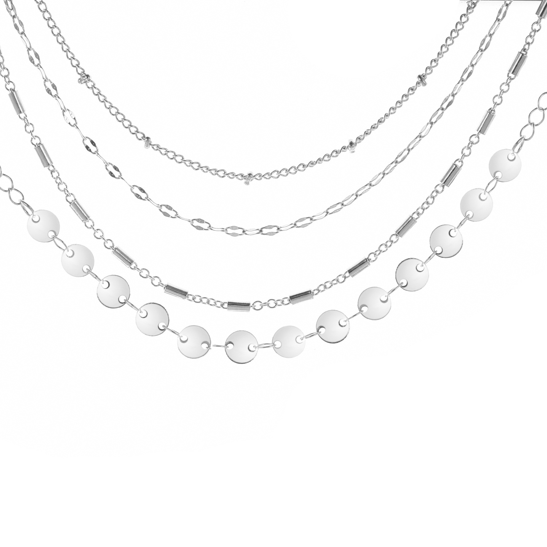 The 4-Pack Tube Chain Disc Lace Bracelet Set offers a unique and stylish accessory option for a variety of occasions. This versatile set can be worn in numerous settings, from casual outings to more formal events. The bracelets are perfect for everyday wear, adding a touch of elegance to your outfit, whether you are dressing up for a night out or simply enhancing your daily look. The simple yet chic design makes these bracelets suitable for various fashion styles, allowing them to seamlessly integrate into any wardrobe. With options in gold and silver, this set can complement a wide range of colors and styles, making it an ideal choice for women who appreciate both style and versatility. Whether you are accessorizing for work, a special occasion, or simply looking to elevate your everyday attire, this bracelet set is sure to meet your needs.
