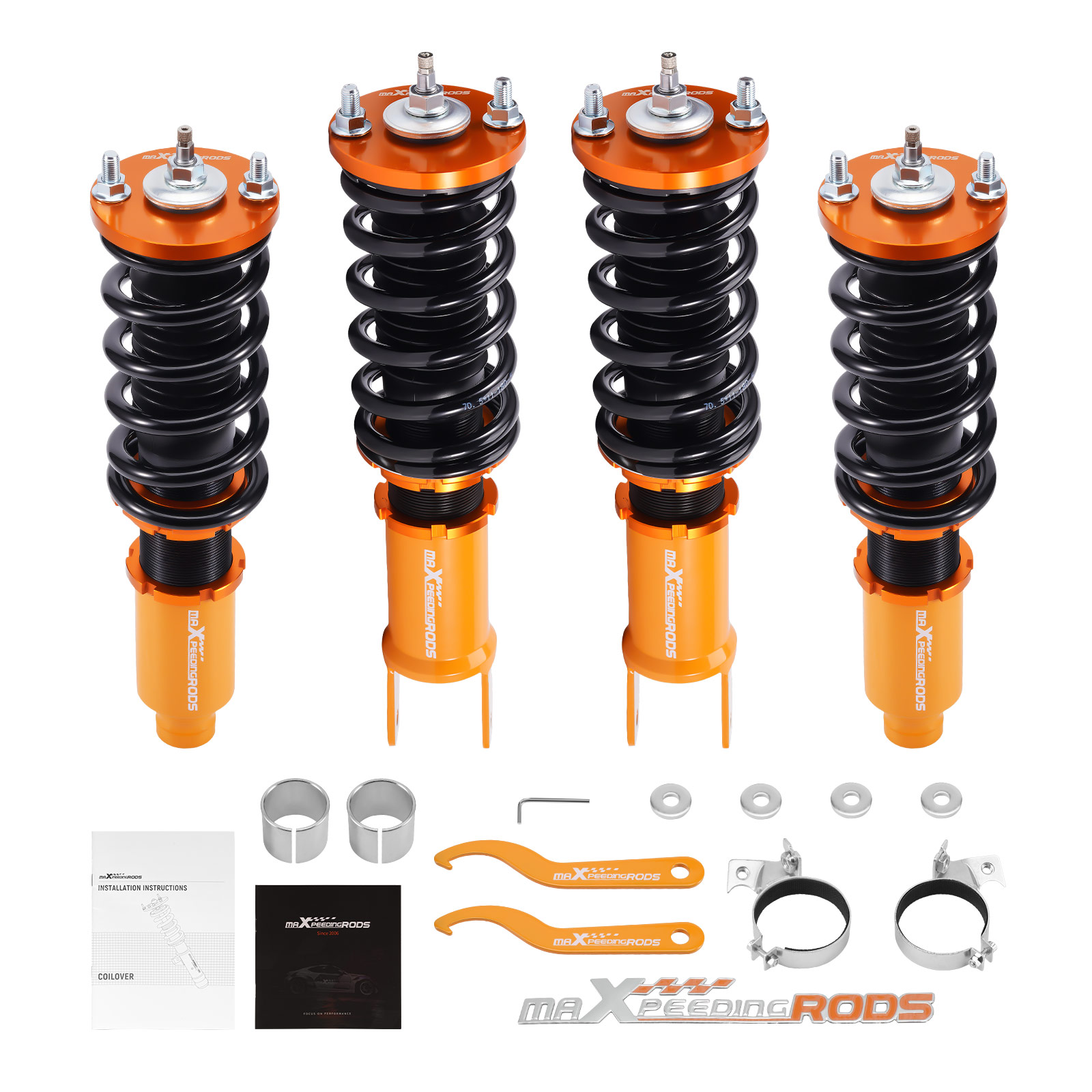 MaXpeedingrods coilovers provide exceptional, adaptable performance, durability, and ride comfort across all road conditions. With 24 levels of damping adjustment, the damper is easily accessible and can be modified using a knob located at the top of the damper mount.