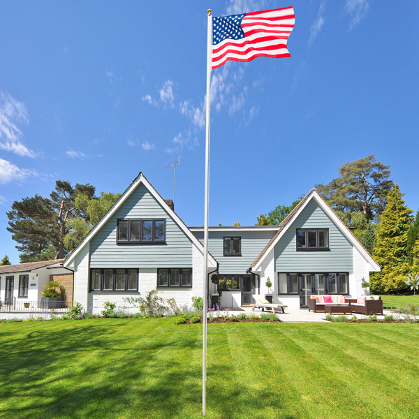 The national flag embodies a sense of solemnity! Express your deep love for the US with this 25ft Solemn Outdoor Decoration Sectional Halyard Pole US America Flag Flagpole Kit! It always evokes a heavenly feeling! This flagpole kit features a well-thought-out combination of a pole, ball finial, rope, sleeves, flag, and carabiners. They are compact and designed for durability, making installation quite simple. The halyard pole is adjustable to suit your needs. You can easily raise or lower the flag by pulling the rope. For added enjoyment, take action here!
