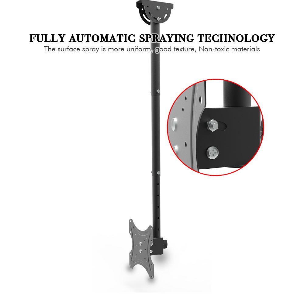 Quality is paramount when selecting a ceiling mount, and the Adjustable TV Ceiling Bracket excels in this aspect. Crafted from cold-rolled plate and finished with high-temperature paint, the bracket is designed for durability and long-lasting performance. The attention to detail in its craftsmanship ensures that it meets high-quality standards, giving customers peace of mind regarding its reliability.