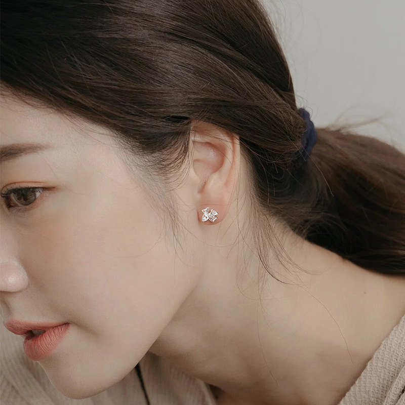 Bow Otica Women’s Stud Earrings – Sweet Fresh Screw Hollow Filament Ornament for Ear Care