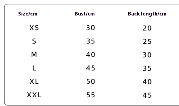 Size: XS (recommended weight 0.50 kilograms-1.50 kilograms), S (recommended weight 1.50 kilograms-2.50 kilograms), M (recommended weight 2.50 kilograms-4.00 kilograms), L (recommended weight 4.00kg-5.50kg), XL (recommended weight 5.50kg-7.50kg), XXL (recommended weight 7.50kg-10.00kg)
