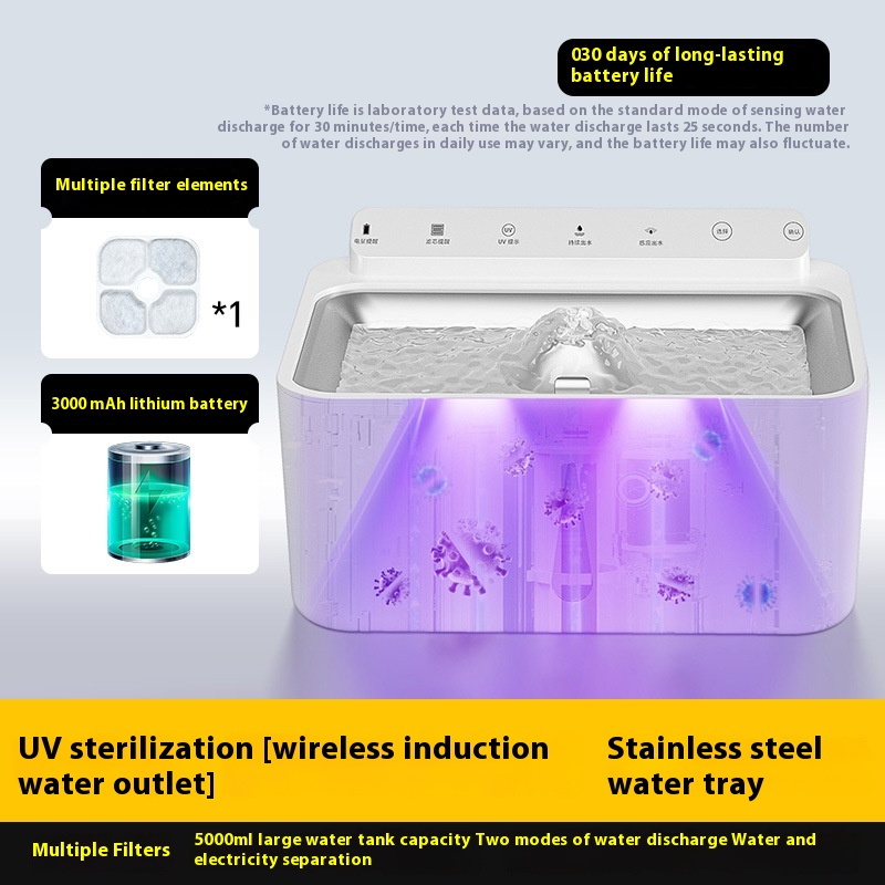 Color: [plug-in basic version] induction water outlet ABS water tray, [disinfection and sterilization version] 3000 mA lithium battery stainless steel water tray, [disinfection and sterilization version] 5000 mA lithium battery stainless steel water tray, [Constant temperature heating version] 3000 mA wireless durable stainless steel water tray, [constant temperature heating version] 5000 mA wireless endurance stainless steel water tray, 5L universal version [activated carbon filter core] 5 pieces, large quantity contact customer service for quotation