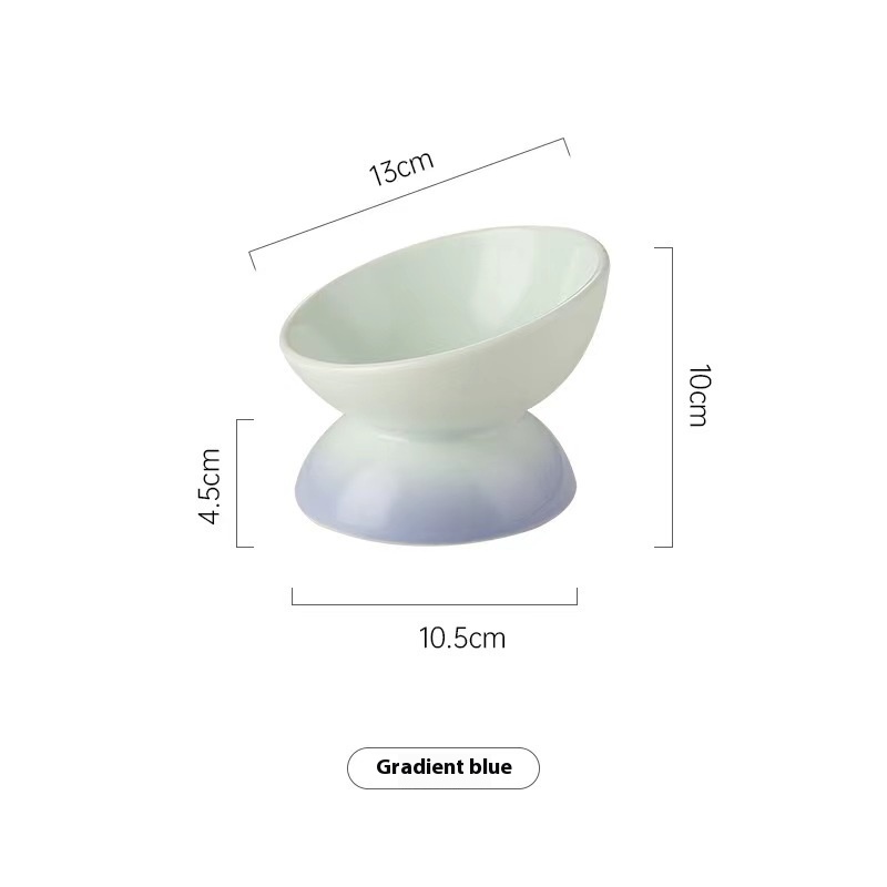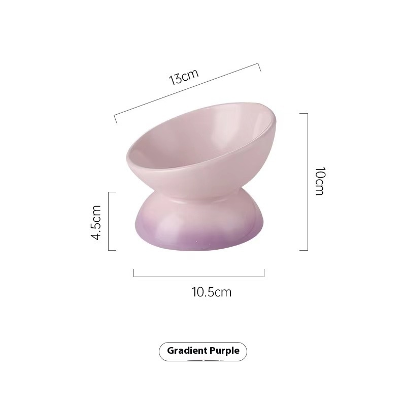 The Ceramic Cat Bowl with Oblique Mouth Design is an innovative pet feeding solution designed specifically for cats. This bowl is particularly beneficial in various settings, whether at home, a veterinary clinic, or during travel. The oblique mouth design supports the natural feeding posture of cats, making it easier for them to eat comfortably while minimizing strain on their cervical spine. The large capacity and diameter of the bowl ensure that it can accommodate a sufficient amount of food or water, making it ideal for both single and multi-cat households. Additionally, its versatile aesthetic—available in gradient peach, gradient creamy green, gradient blue, and gradient purple—allows it to blend seamlessly into different home decors, making it not just functional but also a stylish addition to your pet’s dining area.