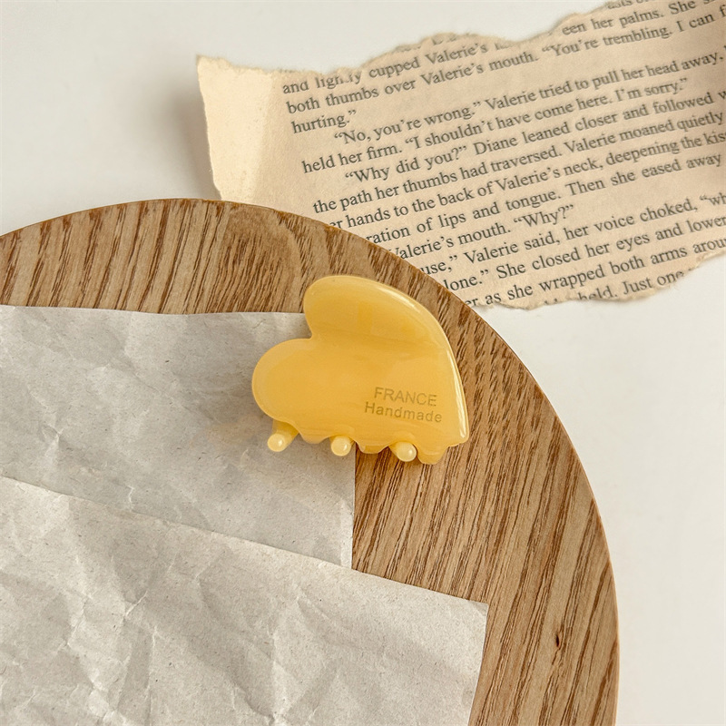 - Color: Lake blue, Brown acetate love small jaw clip, light mint, Brown acetate love small jaw clip, Mermaid acetate love small jaw clip, light leopard print acetate love small jaw clip, khaki acetate love small jaw clip, red acetate love small jaw clip, yellow acetate love small jaw clip, Milky White acetate love small jaw clip, chocolate brown acetate love small jaw clip