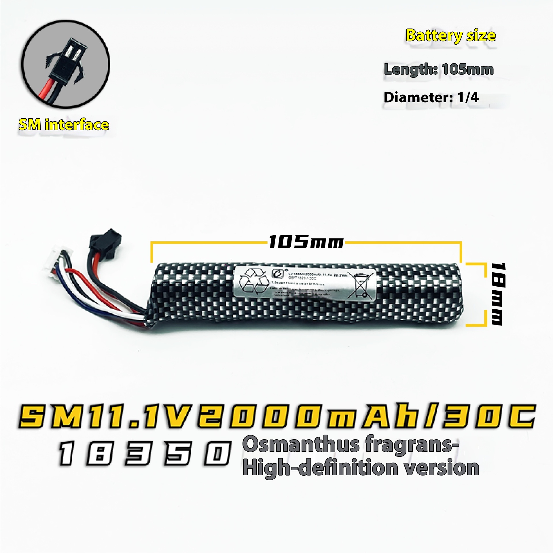 11.1V cylindrical 18350 high discharge version battery – SM 2000mAh/30C,