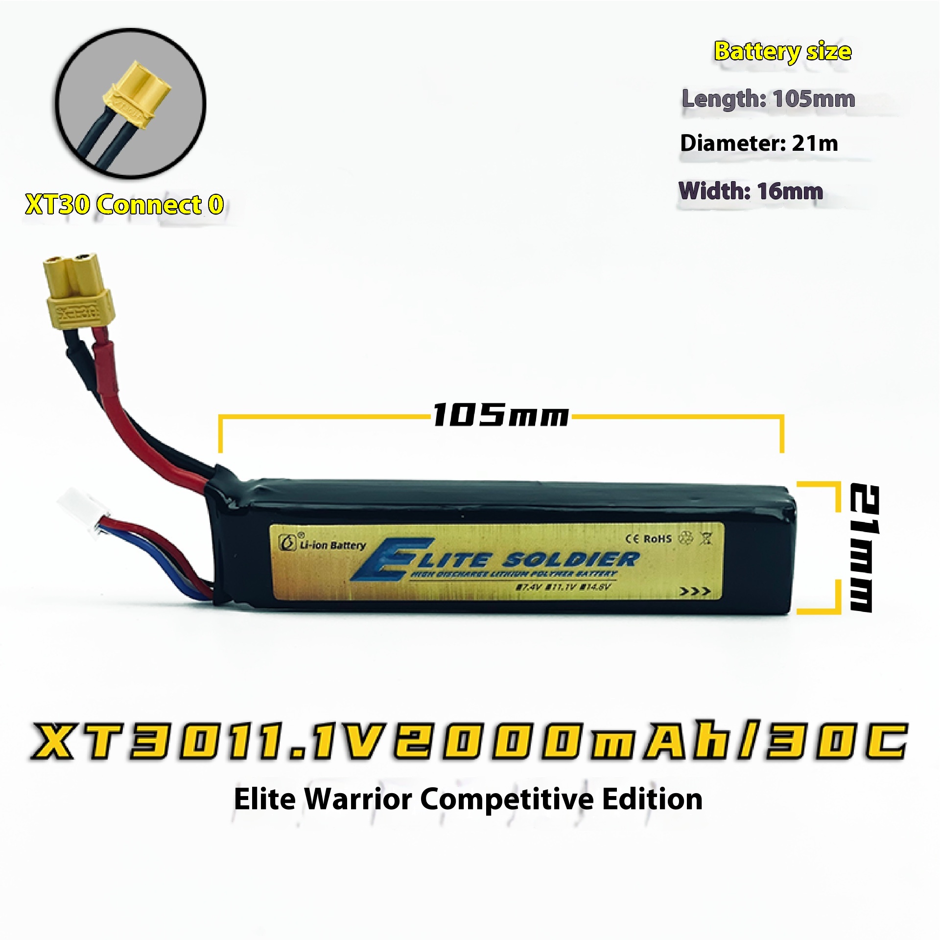 11.1V elite warrior competitive version battery – XT30 2000mAh/30C
