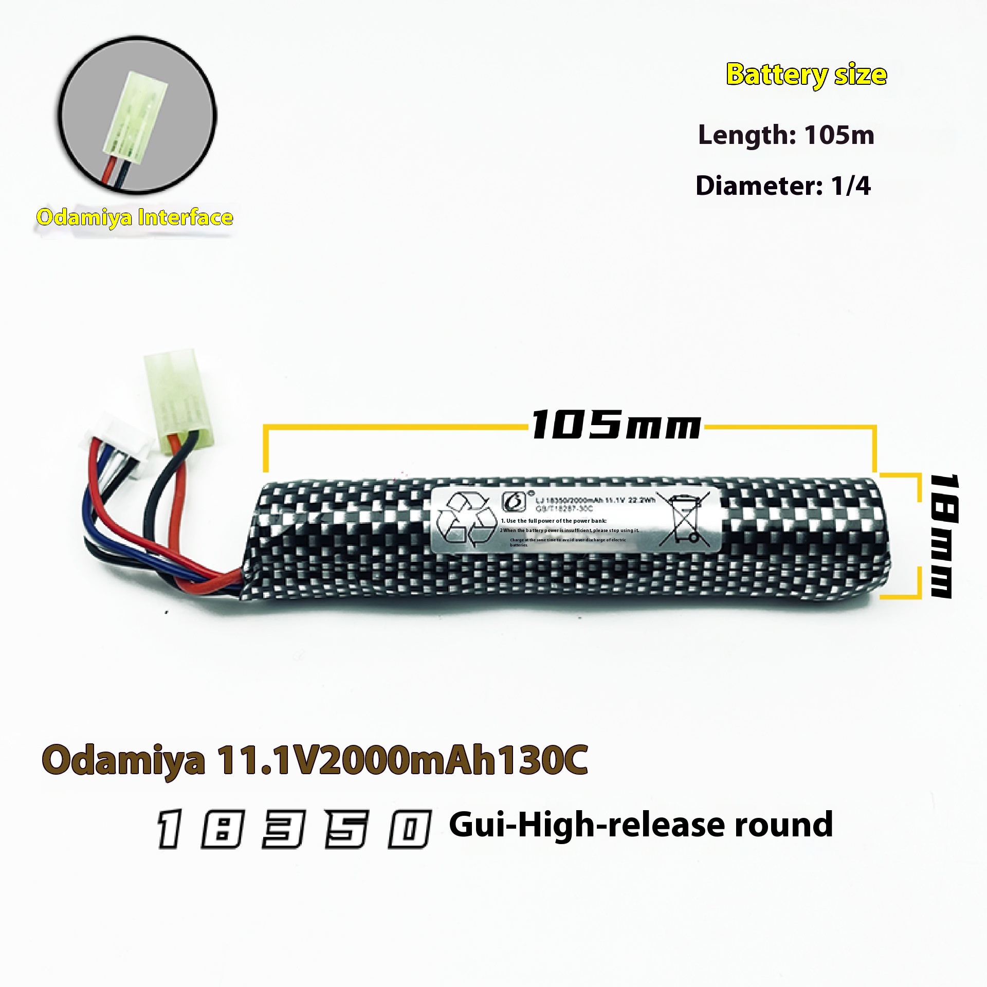 11.1V cylindrical 18350 high discharge version battery – Odamiya 2000mAh/30C,