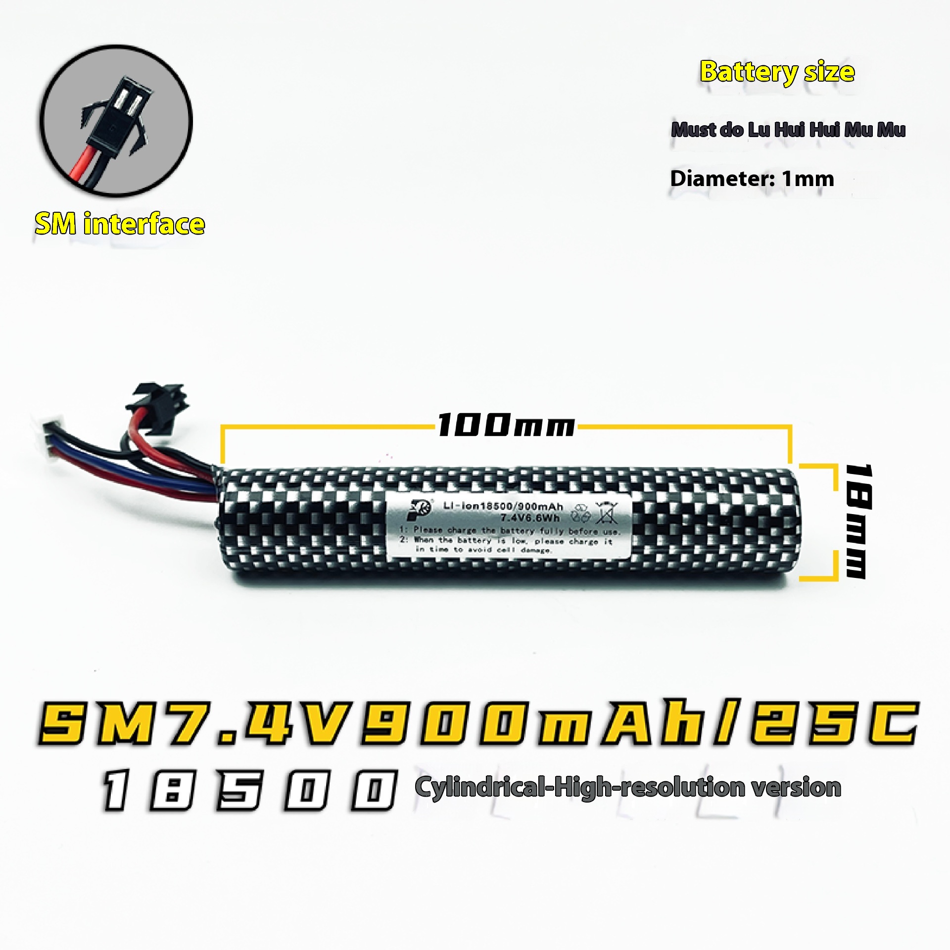 Color: 7.4V cylindrical 18500 high discharge version battery – SM 900mAh/25C,