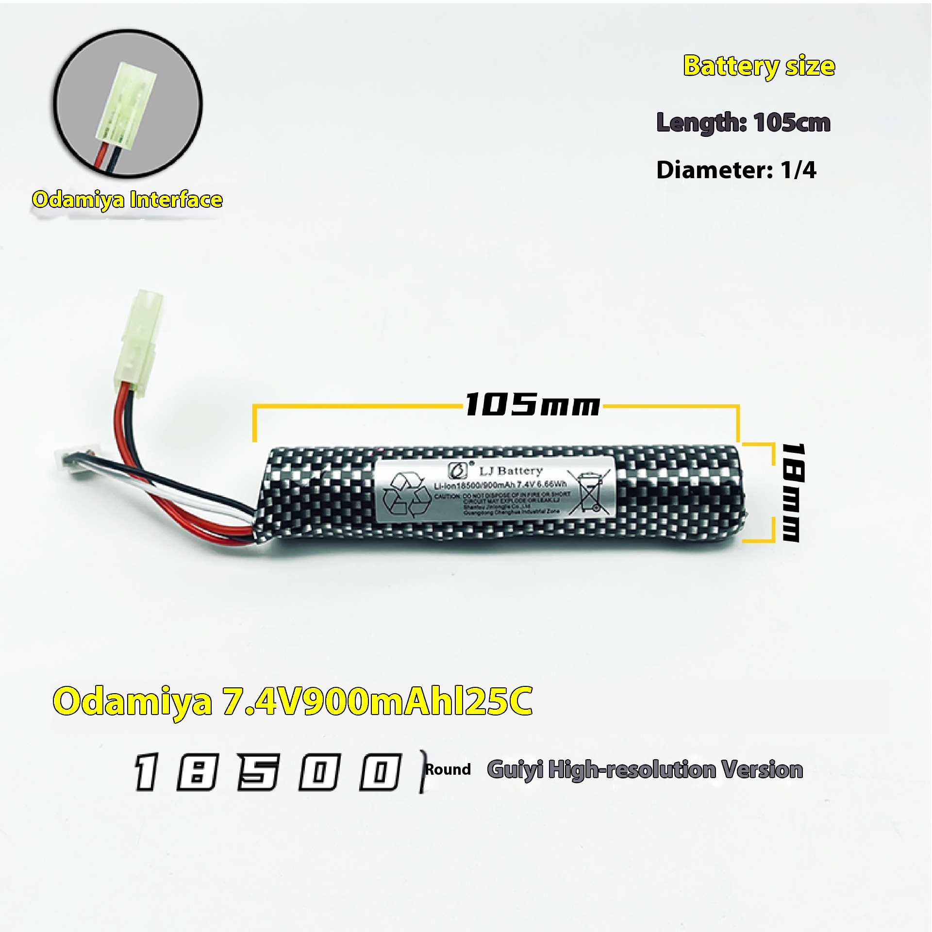 7.4V cylindrical 18500 high discharge version battery – Odamiya 900mAh/25C,