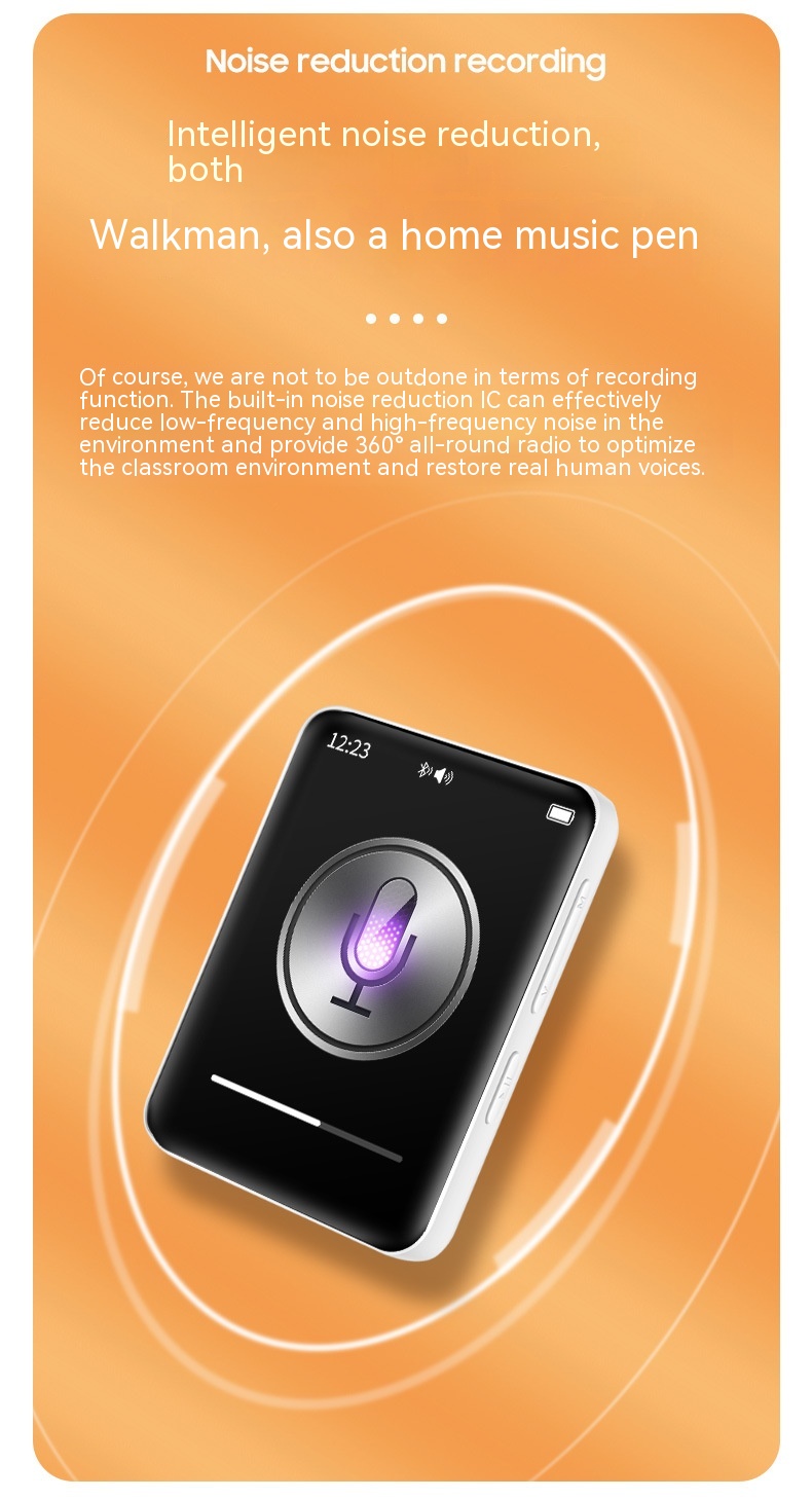 Compact Full Screen Mp3 Walkman for Students – Bluetooth Portable Touch Screen Multifunctional Player