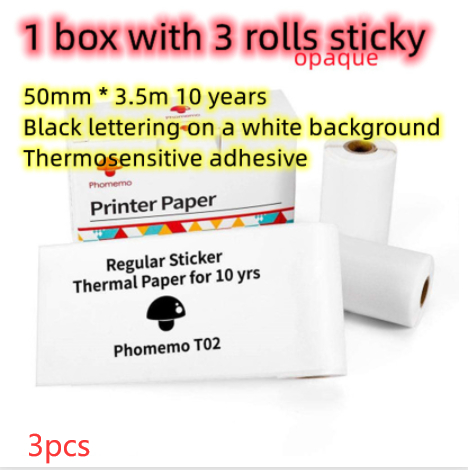 • Style A: 50mm * 3.5m 10-year white background with black lettering thermosensitive adhesive (Sticky paper)