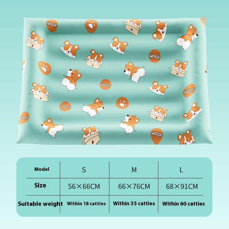 - Cute cream green Corgi square ice pad [S] 56 * 66CM