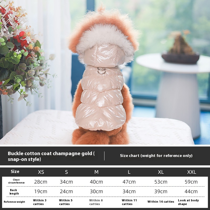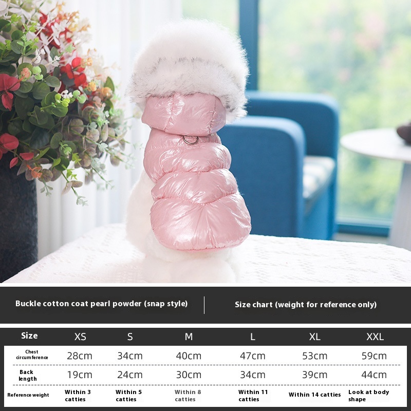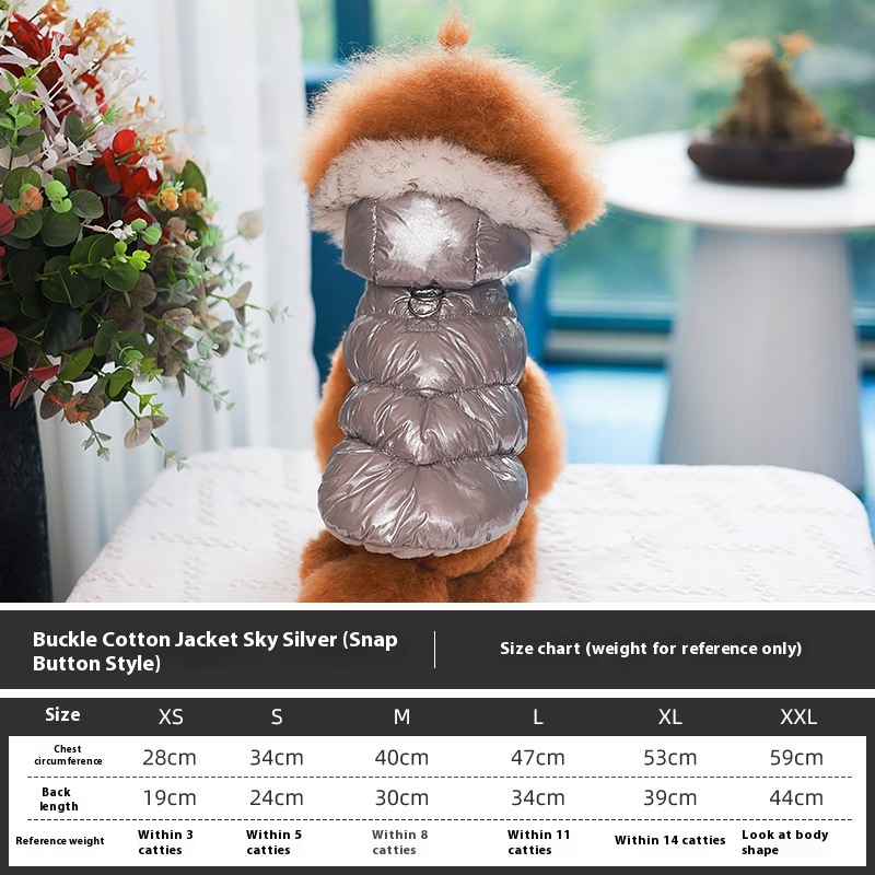 The stylish design and casual style make it a fitting choice for daily wear, holiday gatherings, or special occasions. The vest is made from soft cotton material, providing warmth without sacrificing comfort, making it ideal for pets who need a little extra insulation against the chill. Its range of colors—pearlized blue, pearl powder, champagne gold, and sky silver—adds a touch of flair, allowing pet owners to express their pets’ personalities while keeping them snug and stylish.
