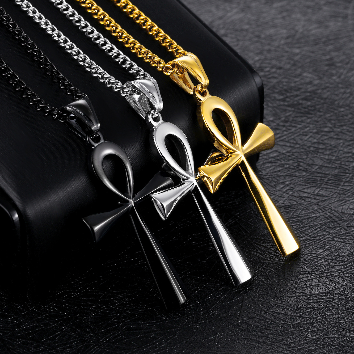 Quality is a cornerstone of the European & American Glossy Stainless Steel Ancient Egyptian Cross Pendant Necklace Amulet. The use of premium materials such as titanium steel ensures that the product is not only visually appealing but also built to last. This necklace is designed to withstand the rigors of daily wear without compromising its structural integrity or aesthetic quality. The craftsmanship involved in its creation is evident in every aspect, from the precision of the geometric design to the finish that enhances its allure. Customers can trust that they are purchasing a reliable product that adheres to high standards of quality assurance, reflecting a commitment to longevity and performance. This necklace is crafted to endure, making it a wise investment for anyone looking for jewelry that can be worn regularly without fear of damage or loss of beauty.
