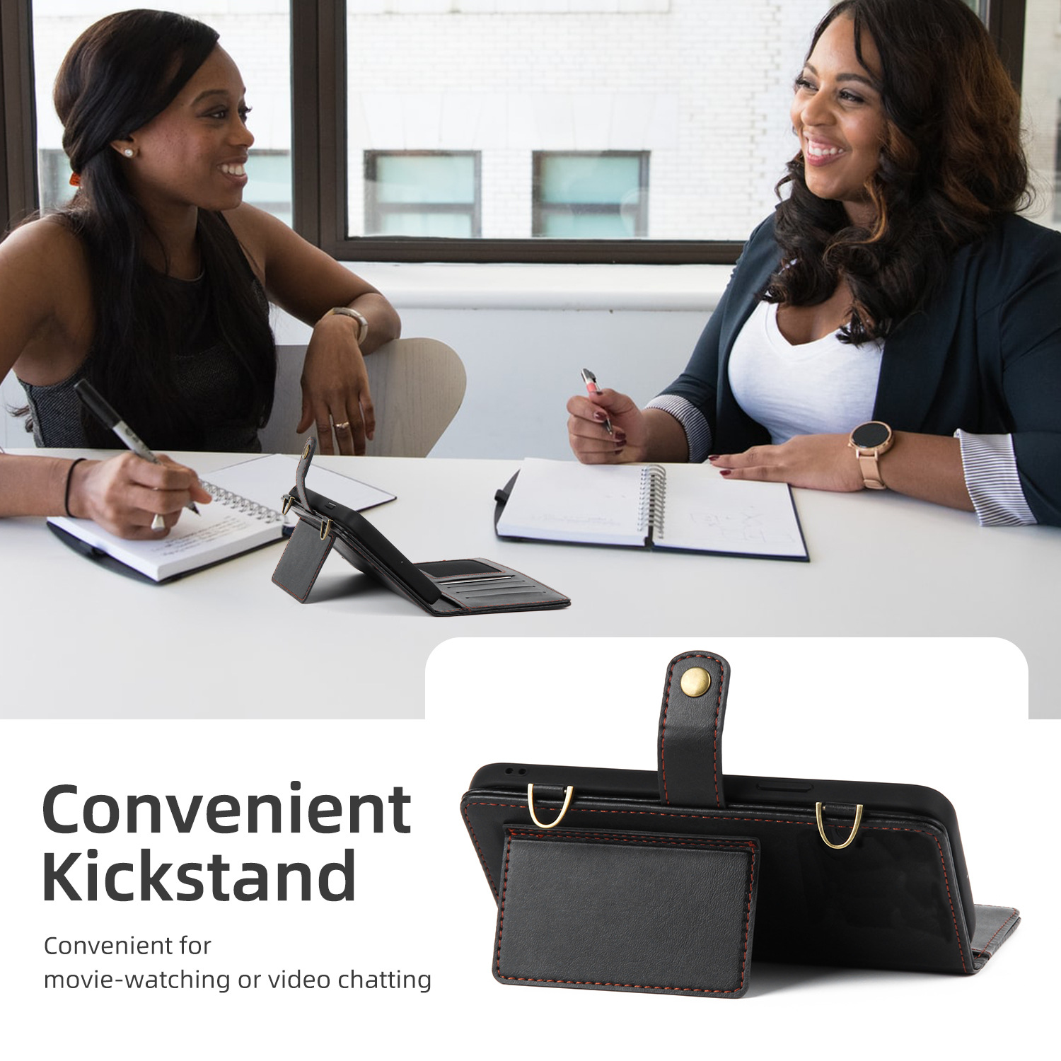 The Crossbody Multifunctional Leather Wallet Case stands out in the market due to its unique combination of style, convenience, and innovative features. It is designed with various functionalities, including a magnetic suction mechanism, anti-fall protection, and anti-fingerprint technology, ensuring that your device remains safe and clean. This wallet case also doubles as a bracket, allowing for hands-free viewing, which is particularly useful during video calls or while watching movies.