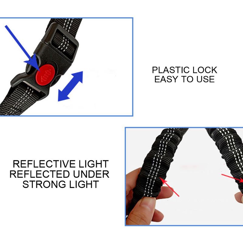 This high elastic rope prevents the dog from bursting out, allowing for stretching and shrinking, effectively absorbing the dog’s impact for added safety! - 3. Telescopic buckle