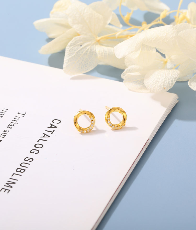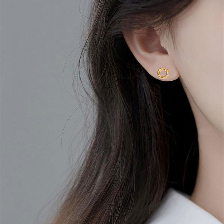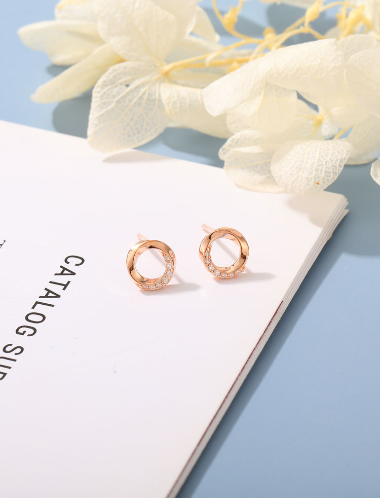 Rose Gold-Ring Diamond Stud Earrings, Yellow Gold-Ring Diamond Stud Earrings, White Gold Color-Ring Diamond Stud Earrings