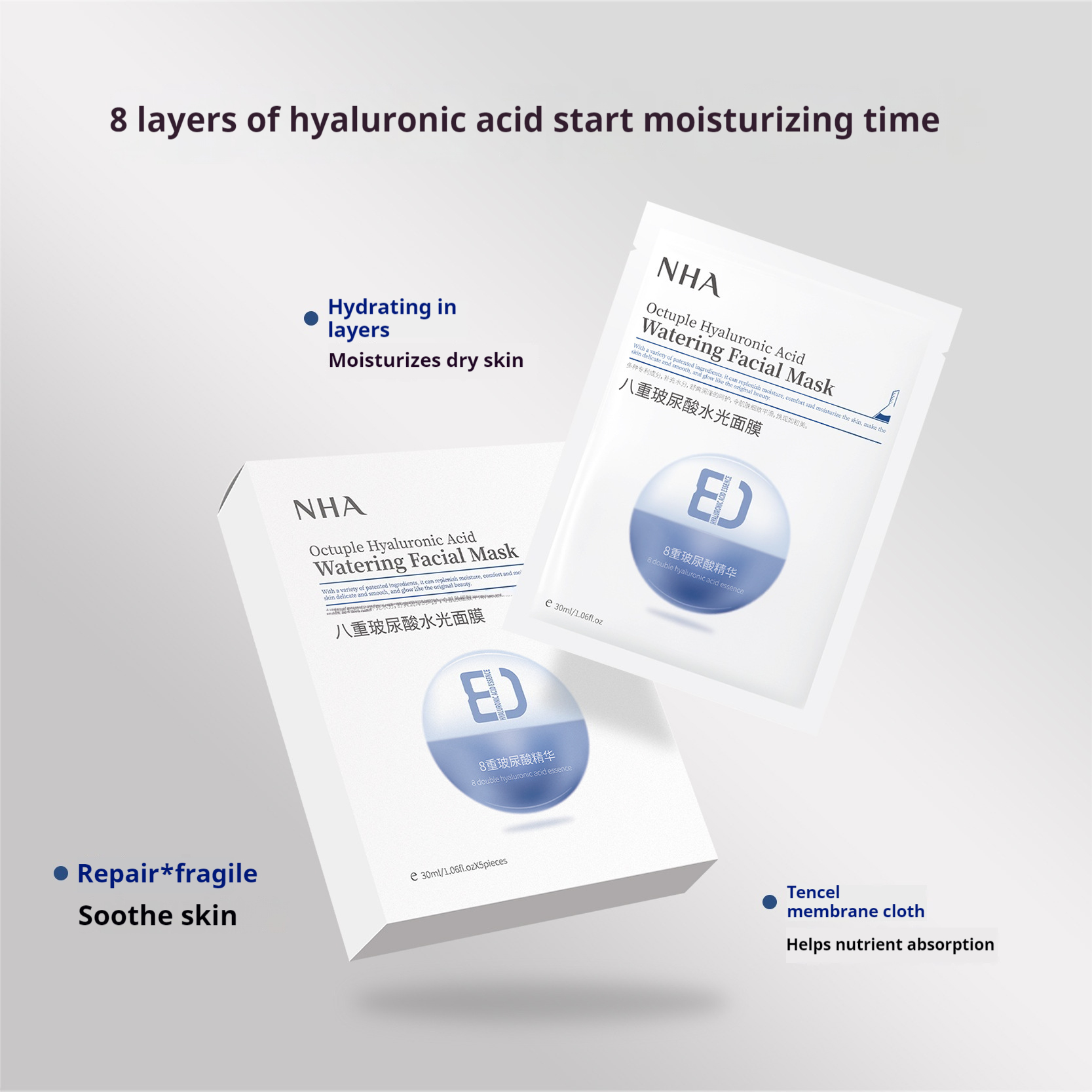 Eight-Weight Hyaluronic Acid Mask for Deep Hydration, Firming, and Pore Repair – Brighten and Moisturize Your Skin Color