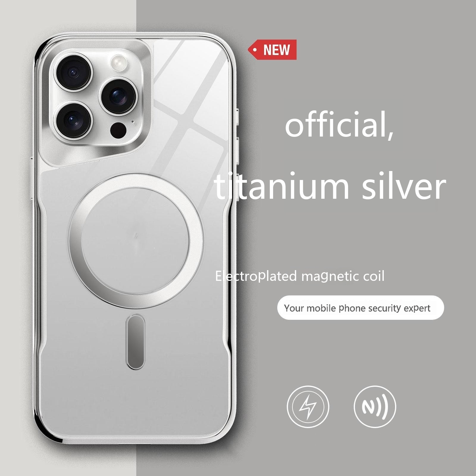 The advantages of the Electroplating Mirror Magnetic Acrylic Phone Case are numerous and compelling. This product stands out in the market due to its unique combination of style and functionality. The electroplating process not only enhances the visual appeal of the case with stunning colors like titanium gray and titanium silver but also adds a layer of durability. The case is designed to be shockproof, anti-wear, and anti-fall, so users can trust that their devices are well-protected against accidental drops and daily wear and tear.