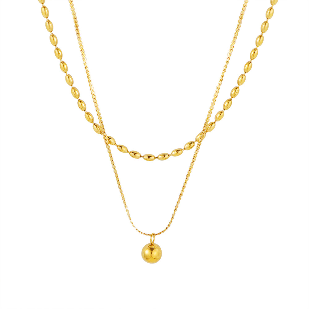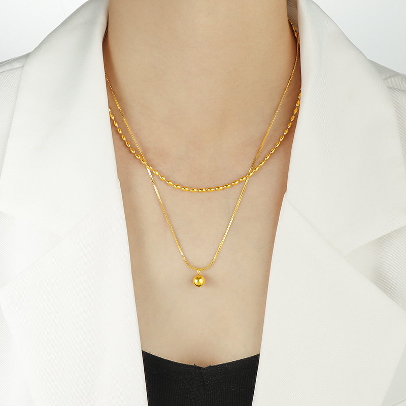 Quality is a hallmark of the Elegant Double-layer Golden Balls Titanium Steel Necklace. It is crafted from premium titanium steel, known for its robustness and resistance to corrosion. The electroplating treatment process further enhances its finish, ensuring that the necklace maintains its golden hue and resists tarnishing. The meticulous craftsmanship that goes into creating this piece ensures that it can withstand daily wear while still looking brand new. Customers can trust in the longevity and reliability of this necklace, as it is designed to endure the test of time without compromising on aesthetics. With strict quality assurance standards in place, each necklace is carefully inspected to meet high expectations, providing peace of mind for those who invest in this exquisite piece of jewelry.