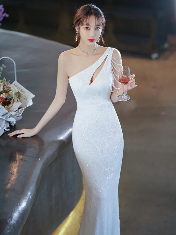 The Elegant One-Shoulder High-End Affordable Luxury White Dress is a versatile garment designed to shine in a multitude of settings. This dress is perfect for a range of occasions, including weddings, adult ceremonies, corporate annual meetings, performances, and intimate dates. Its elegant style and sophisticated one-shoulder design make it suitable for formal events, while the chic simplicity allows for easy wear in more casual settings.