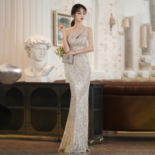 Quality is at the forefront of the Elegant One-Shoulder High-End Dress. Crafted from high-quality polyethylene fiber, the dress promises both durability and comfort. The material is known for its resilience, allowing the dress to maintain its shape and look fresh even after multiple wears. Attention to detail is evident in the craftsmanship, ensuring that each piece meets high standards of quality.
