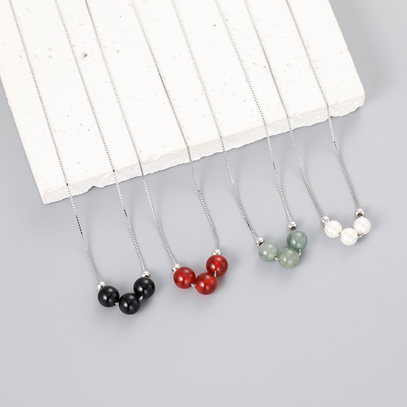 Color: 3 pcs black onyx necklace, 3 pcs red agate necklace, 3 pcs pearl necklace, 3 pcs gray jade necklace
