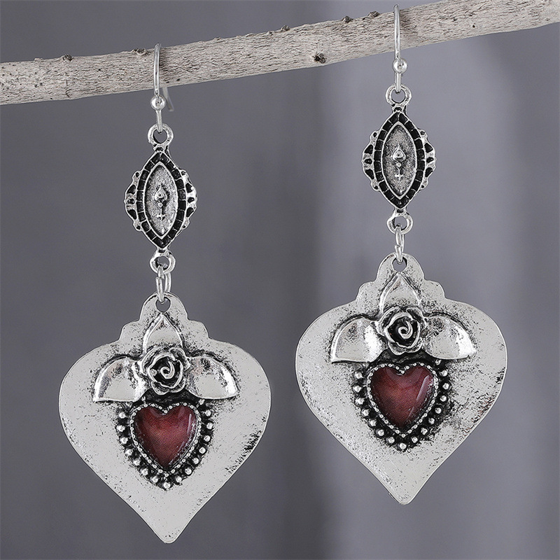 Introducing the Elegant Vintage Rose Heart-Shaped Pendant Earrings