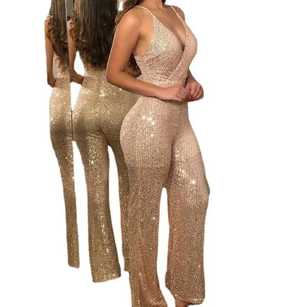 For those interested in bulk purchasing, the Elegant Women’s Champagne Sequin Jumpsuit presents an excellent opportunity for retailers and event planners.