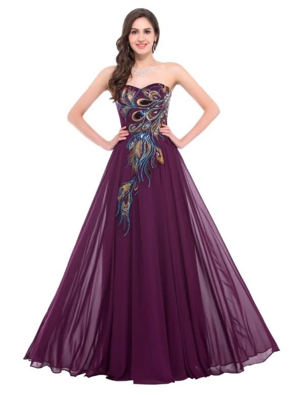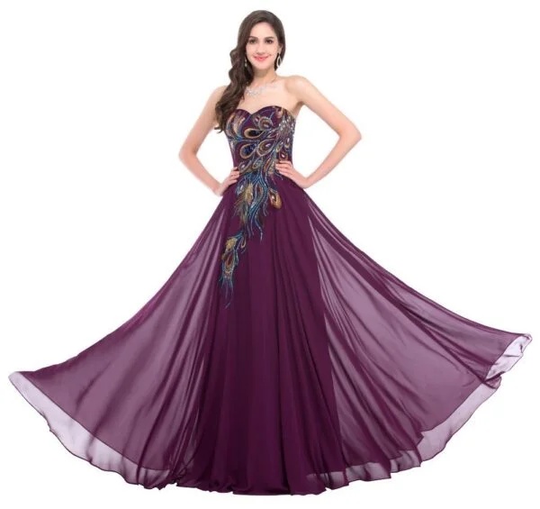 What sets the Embroidered Peacock Heart Chiffon Collar Dress apart from its competitors are its unique design elements and exceptional craftsmanship. The exquisite embroidery detailing, featuring a peacock heart motif, adds a touch of artistry that elevates the overall aesthetic of the dress. This intricate detailing distinguishes it in a market saturated with standard formal wear, giving customers a unique option that reflects their individuality.