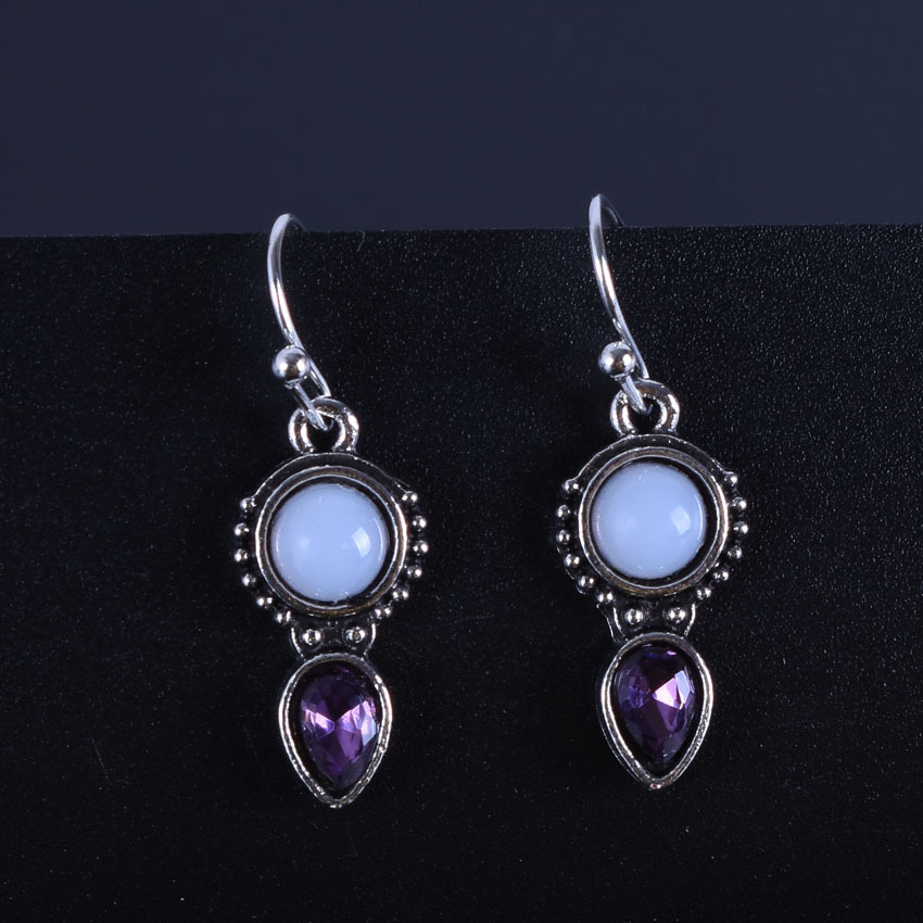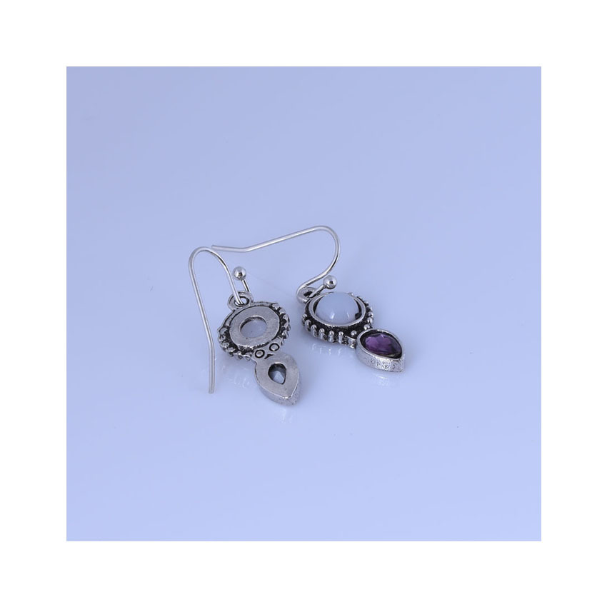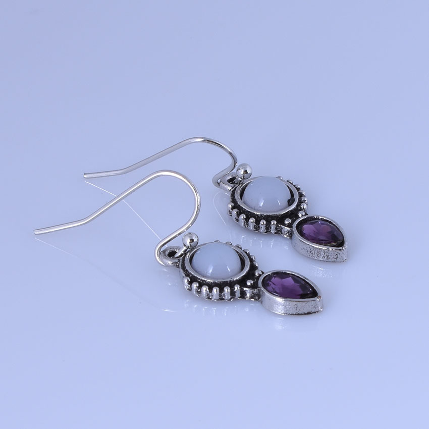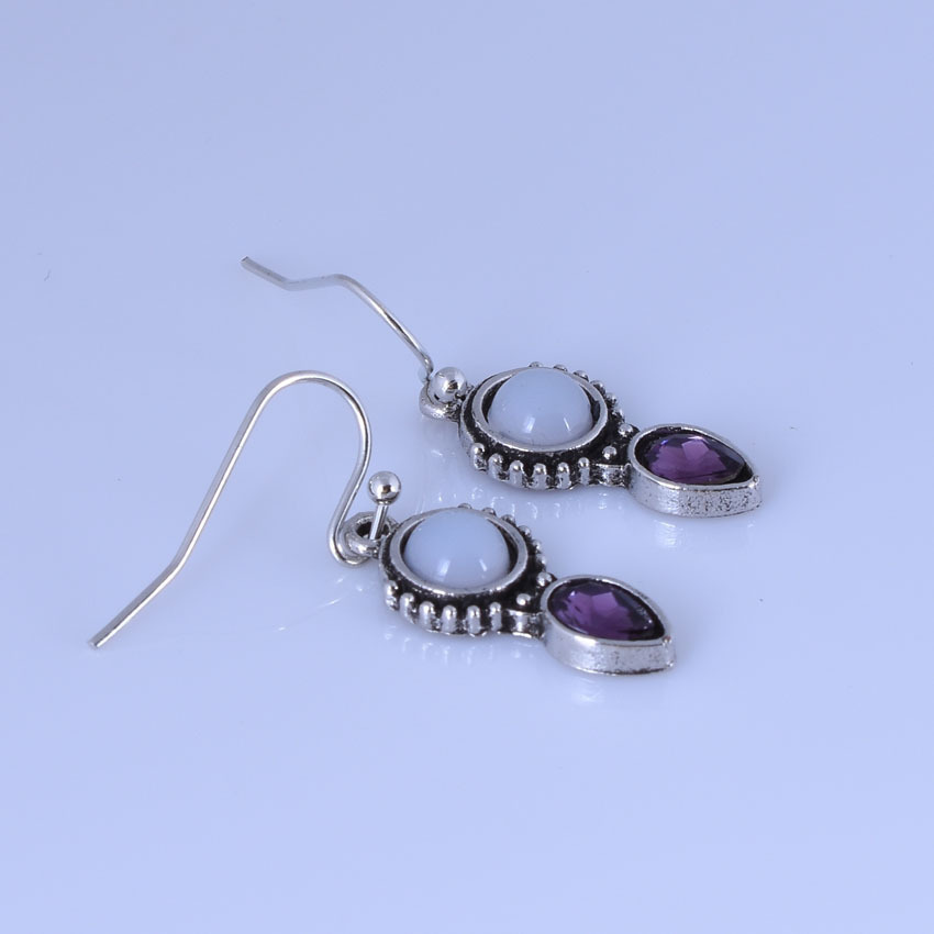 Exaggerated Vintage Thai Silver Moonstone Earrings with Pear-shaped Amethyst Water Drop Design