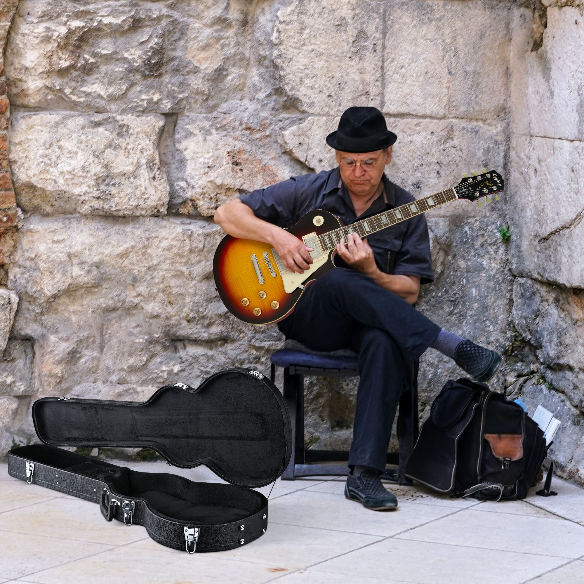 The Folk Guitar Outer Box is a meticulously designed case tailored specifically for electric guitars, ensuring optimal protection and functionality. This product is ideal for musicians and guitar enthusiasts who require a reliable solution for safely transporting their instruments. Its robust hard plywood construction, combined with a PU leather wrap, makes it suitable for various application scenarios, including live performances, studio sessions, and travel. Whether you are a professional musician traveling between gigs or a hobbyist looking to safeguard your prized guitar at home, this case is versatile enough to accommodate your needs.