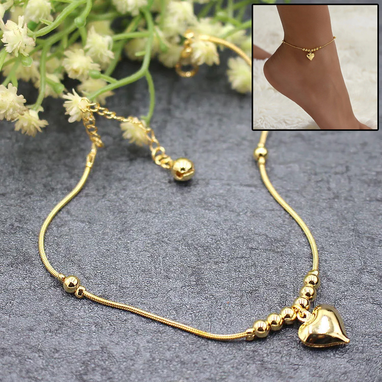 Gothic Gold Heart Pendant Anklet for Women | Vintage Chunky Ball Beaded Jewelry