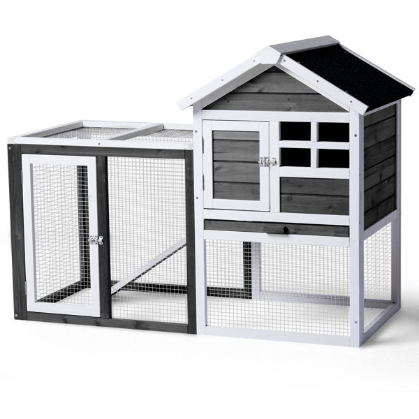 One of the standout advantages of the Gray Fir Wood House Type Chicken and Rabbit Cage is its exceptional design and user-friendly features. The hutch includes a removable pull-out upper tray, which simplifies the cleaning process and ensures a hygienic living space for your pets, free from mold and unpleasant odors.