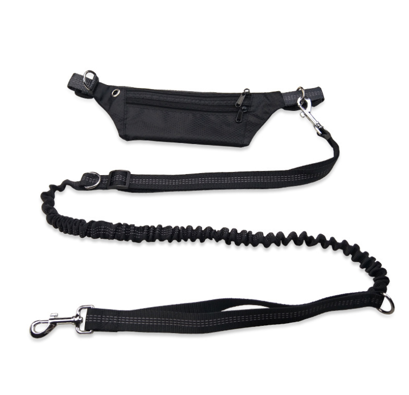 Run or exercise your dog hands-free with this leash that easily attaches to a belt that secures around your waist. The leash is elastic, allowing it to stretch and retract as your dog moves. Connected to the waistband is a buttock pack, providing a place for everything you bring along. This leash transforms the experience of exercising with your dog, as you no longer need to worry about holding it.