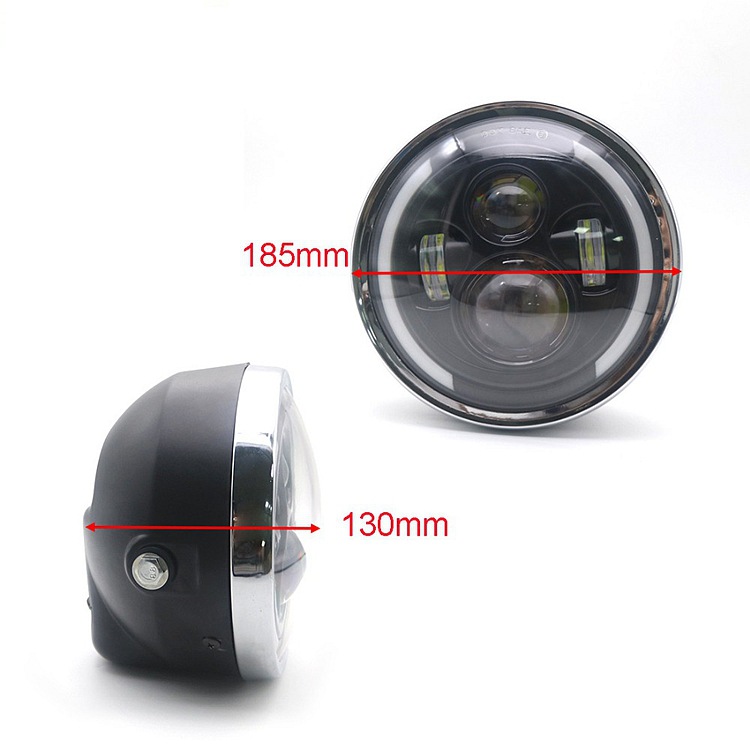 Quality is at the forefront of the High-Performance 7.5 Inch LED Headlight‘s design. Constructed from a combination of ABS and aluminum, the materials chosen provide excellent hardness and reliability. This attention to craftsmanship not only ensures that the headlight is visually appealing but also that it is built to last. The surface of the headlight is designed for easy cleaning, maintaining its aesthetic integrity over time, even after exposure to harsh riding conditions. With a weight of 1.3 kg and dimensions of 180 x 135 mm, it is compact yet robust, perfectly blending functionality with a sleek design. This commitment to quality is reflected in its performance, making it a highly reliable choice for those who demand durability and effectiveness from their motorcycle accessories.