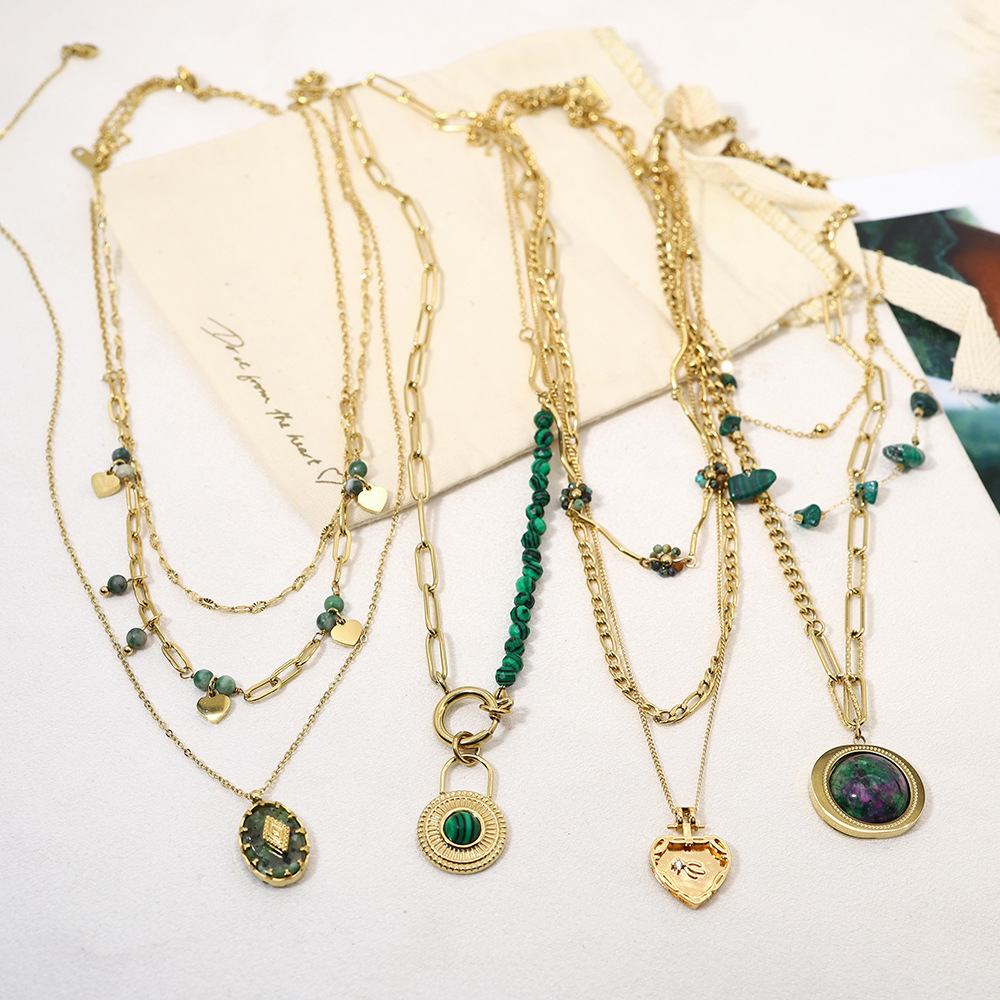 Quality is paramount when it comes to jewelry, and the Ins Style Green Malachite Necklace does not disappoint. Crafted from premium titanium steel, it promises not only an appealing aesthetic but also longevity and resistance to wear. The meticulous inlaid gem treatment process used in its creation ensures that each piece maintains its brilliance and allure over time. The necklace’s geometric design reflects a modern sensibility while remaining timeless, allowing it to be a staple in any jewelry collection. Additionally, the necklace adheres to stringent quality assurance standards, ensuring that customers receive a product that exceeds their expectations for durability and performance. Whether worn daily or for special occasions, this necklace is designed to retain its beauty and functionality, making it a reliable addition to any wardrobe.