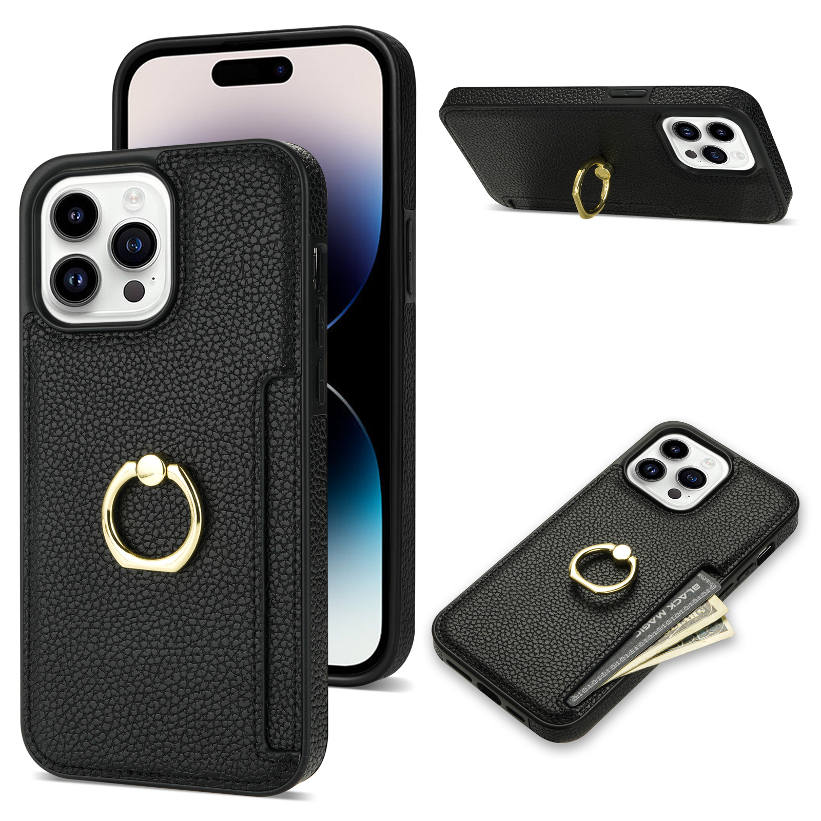 The Litchi Pattern Secure Ring Bracket Card Wallet with Anti-Fall Shell is designed for the modern user who values both functionality and style. This versatile accessory is suitable for a variety of application scenarios, making it an ideal complement for everyday life. Whether you’re commuting to work, heading out for a casual outing, or enjoying a night out, this product seamlessly integrates into your lifestyle. It is compatible with several iPhone models, including the iPhone 14, iPhone 14 Pro, iPhone 14 Pro Max, and iPhone 14 Max. The unique litchi pattern not only adds an aesthetic appeal but also ensures a secure grip, preventing accidental drops. With its compact design, the wallet can easily fit in your bag or pocket, making it an excellent choice for those who prefer convenience without sacrificing style.