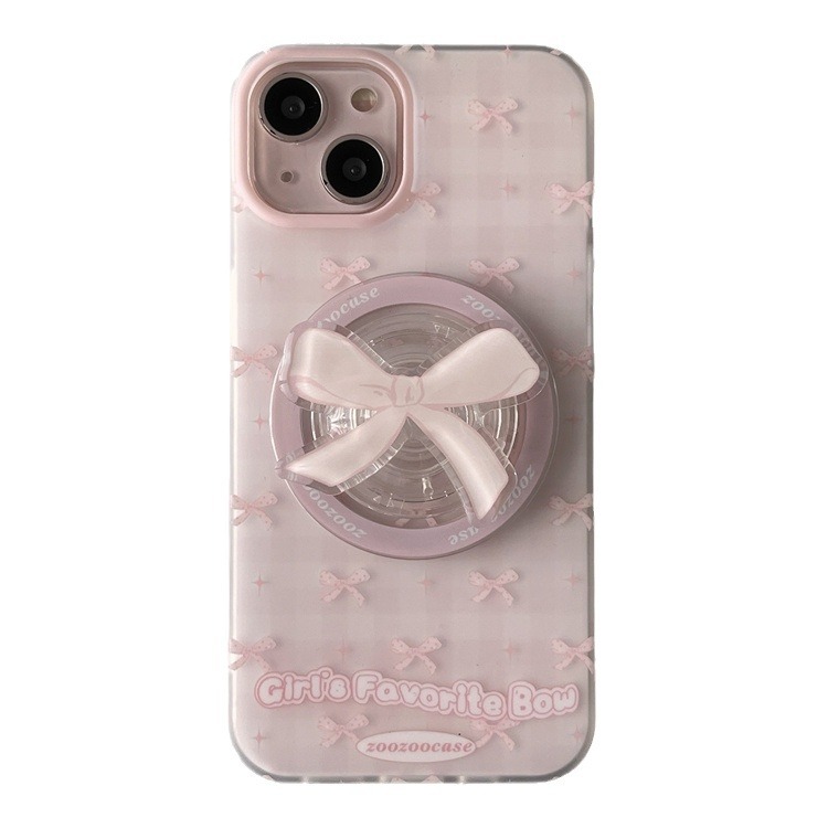 Magnetic Plaid Bow Phone Case – Drop-Resistant Protection & Stylish Design