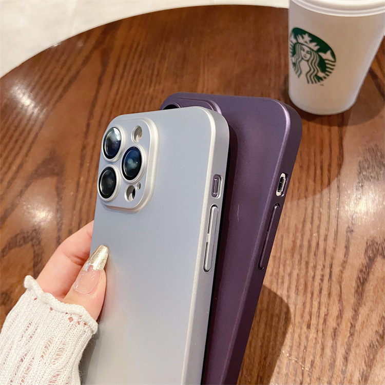 Metallic Finish PC Phone Case with Lens Protector – Solid Color Design