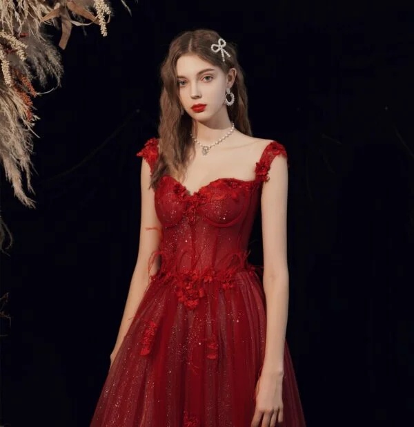 This dress not only serves its purpose as a stunning outfit but also brings numerous advantages that set it apart from other options on the market. One of its standout features is the use of skin-friendly fabric, ensuring comfort without compromising style. The handmade flowers detail adds a unique charm and elegance, making this dress not just an article of clothing but a piece of art.