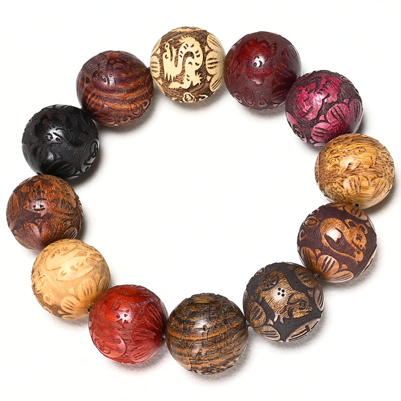 The National Style 108-Piece Wooden Beaded Bracelet Set is a versatile accessory that can be utilized in a variety of settings, making it an ideal choice for those seeking both style and functionality. This set is perfect for personal use, allowing individuals to express their unique fashion sense or spiritual beliefs through the elegant wooden beads. The bracelets can be worn for casual outings, formal events, or even during meditation and yoga practices, serving both aesthetic and practical purposes. With a rich assortment of beads, including those carved with zodiac signs and traditional designs, this product caters to diverse tastes and preferences. It is suitable for various demographics, from fashion enthusiasts to individuals interested in cultural expressions, thereby enhancing its applicability across different markets.