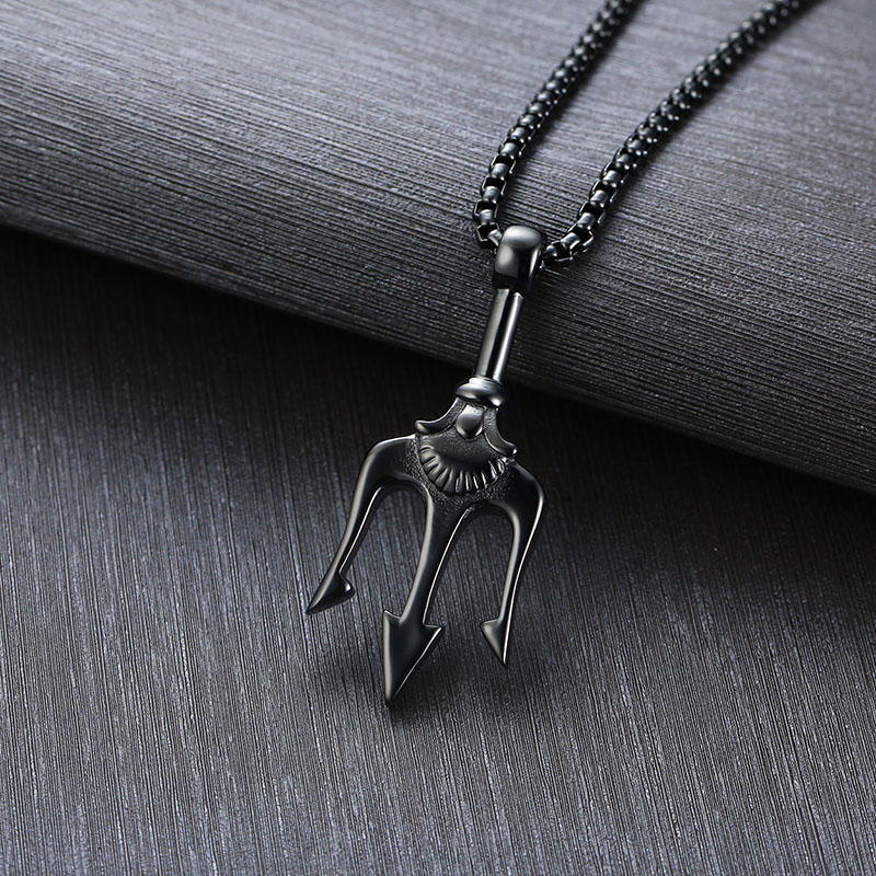 Neptune’s Trident Necklace – Retro Poseidon Trident Harpoon Pendant for Men | Trendy Mythical Sea King Jewelry